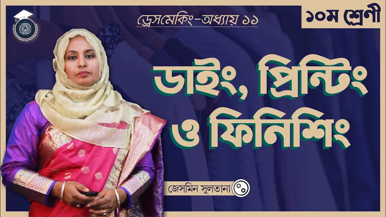 ডাইং, প্রিন্টিং ও ফিনিশিং ক্লাসটি বাংলাদেশ কারিগরি শিক্ষা বোর্ডের [ Bangladesh Technical Education Board ], ভোকেশনাল শিক্ষার [ Vocational Trades ], ড্রেস মেকিং কোর্সের [ Dressmaking Course ] অংশ।