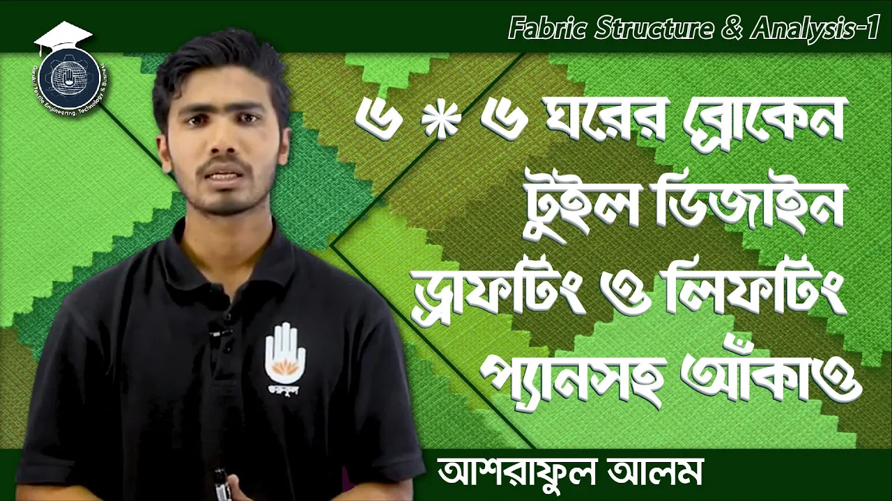 ৬*৬ ঘরের ব্রোকেন টুইল ডিজাইন অংকন ক্লাসটি বাংলাদেশ কারিগরি শিক্ষা বোর্ডের, ভোকেশনাল শিক্ষার, ফেব্রিক স্ট্রাকচার এন্ড এনালাইসিস-১ এর অংশ।