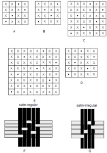 - রেগুলার সাটিন এর ক্ষুদ্রতম ডিজাইন ৫×৫ কিন্তু ইরেগুলার সাটিন ৪× ৪ সুতা দ্বারা উইভ তৈরি করা সম্ভব৷