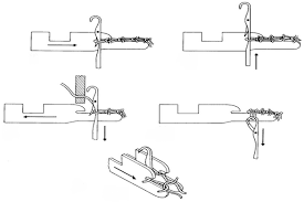 সুতা খাওয়ানো: সূঁচগুলিকে তাদের কৌশলে প্রত্যাহার করা হয় যাতে পুরানো লুপগুলি খোলা ল্যাচগুলির দ্বারা আবৃত থাকে এবং নতুন সুতাগুলিকে খোলা হুকগুলিতে খাওয়ানো হয়।